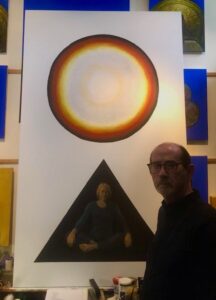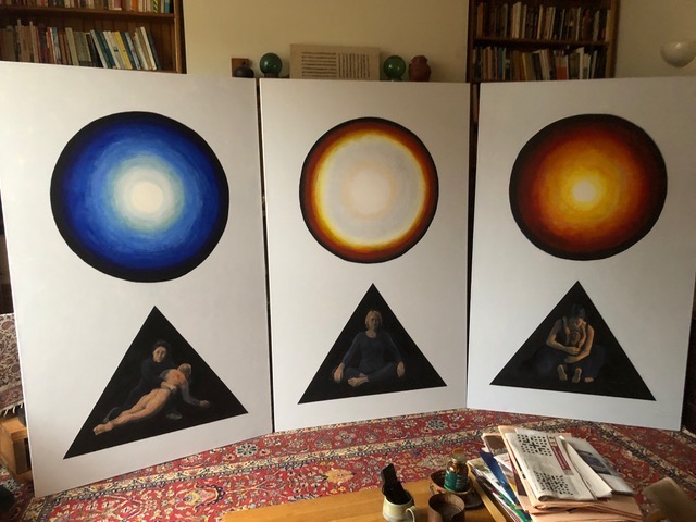 This triptych is designed to be displayed some form of a chapel or a chapel-like space. This could be of any any religion or none, as long as the ambience/architecture suits the purpose. The painting is an object of contemplation and should work in the manner of an icon.